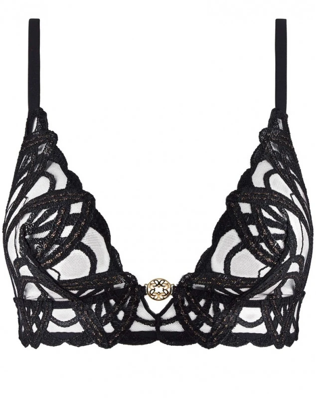 Le soutien-gorge triangle sans armature de la collection My Desire vous offre un aspect sensuel et élégant de parts ses matériaux de qualité qui joue sur la transparence de la matière, le tout orné d’un bijou à l’entre gorge siglé Elie Saab.