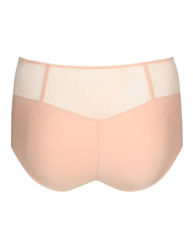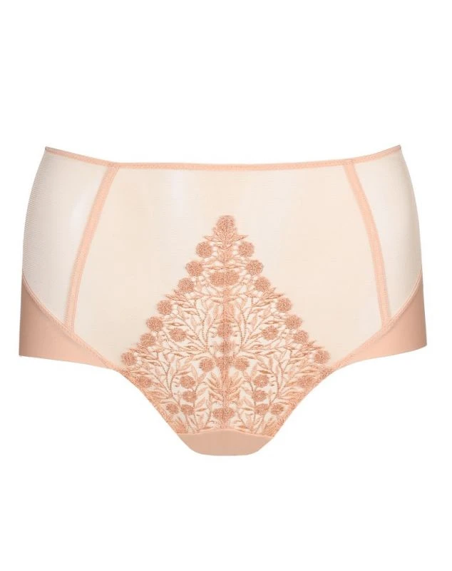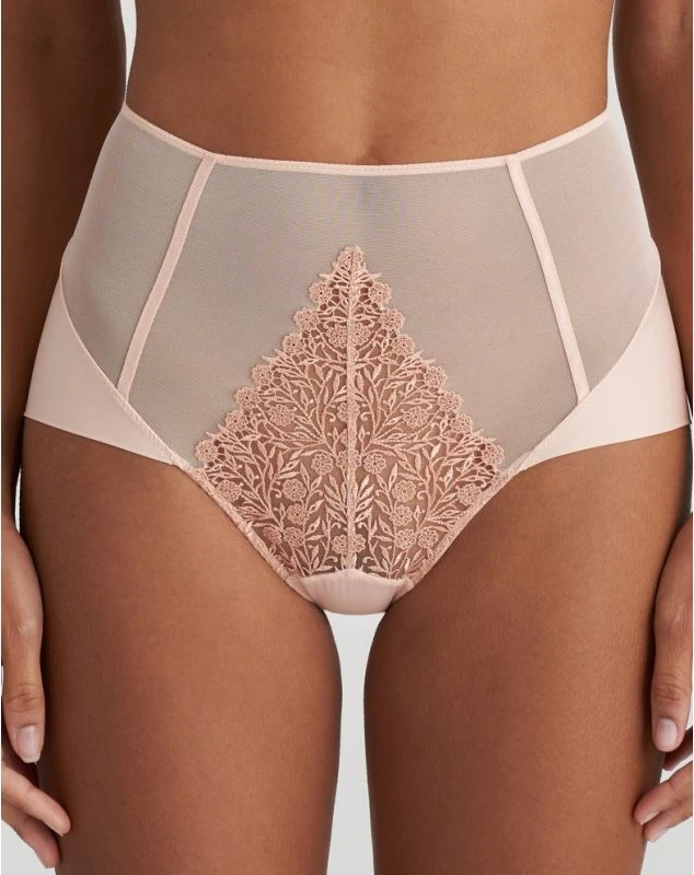 Culotte taille haute séduisante affichant une broderie raffinée, du tulle transparent et des lignes épurées.
