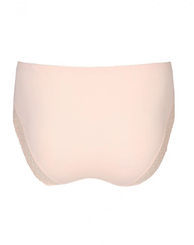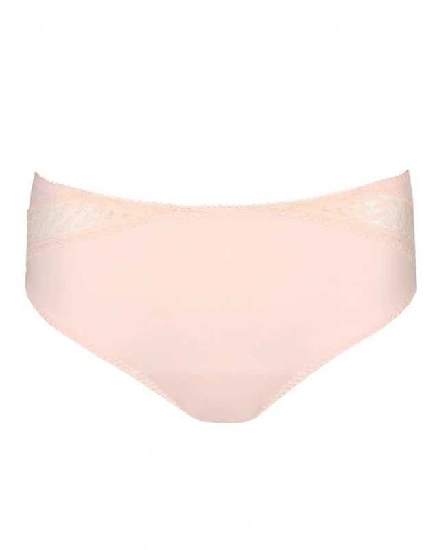 Élégante culotte taille haute en tissu lisse, affichant des bandes de dentelle qui s’étendent de l’avant à l’arrière. Le rose poudré Crystal Pink est à la mode, féminin et facile à assortir.
