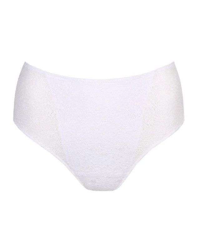 Culotte taille haute super-féminine en dentelle au motif années 1970. Le dos est réalisé dans un tissu à l’aspect satiné et est orné de dentelle à cils sur les fesses. Dentelle vintage en blanc frais : branchée, séduisante et idéale pour les mariées d’été !