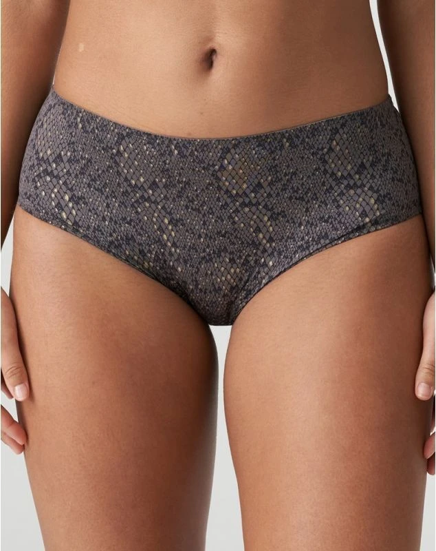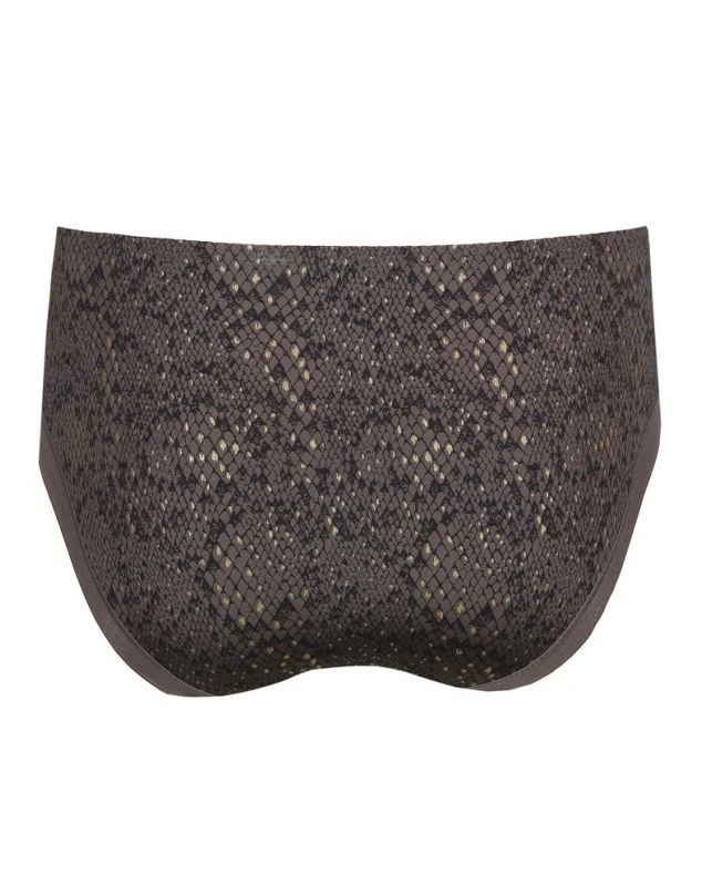 Culotte taille haute élégante en tissu satiné avec motif serpent. La taille haute enveloppe confortablement votre ventre, les jambes sont finement finies pour que la culotte ne coupe pas.