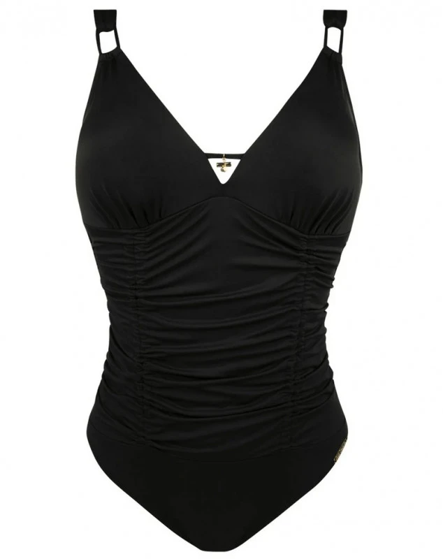Le maillot de bain une pièce nageur maintien de la collection Sublime Drape vous offre un aspect raffiné grâce à ses bretelles fantaisies ajourées ainsi qu’à ses fronces devant qui cachent les imperfections, le tout sublimé d’un bijou doré à l’entre gorge. Il assure également un maintien optimal de par son élastique sous poitrine.