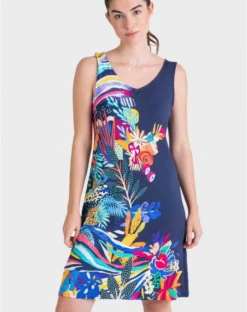 Robe De Plage Sans Manche 100% Coton Imprimé Multicolore Massana