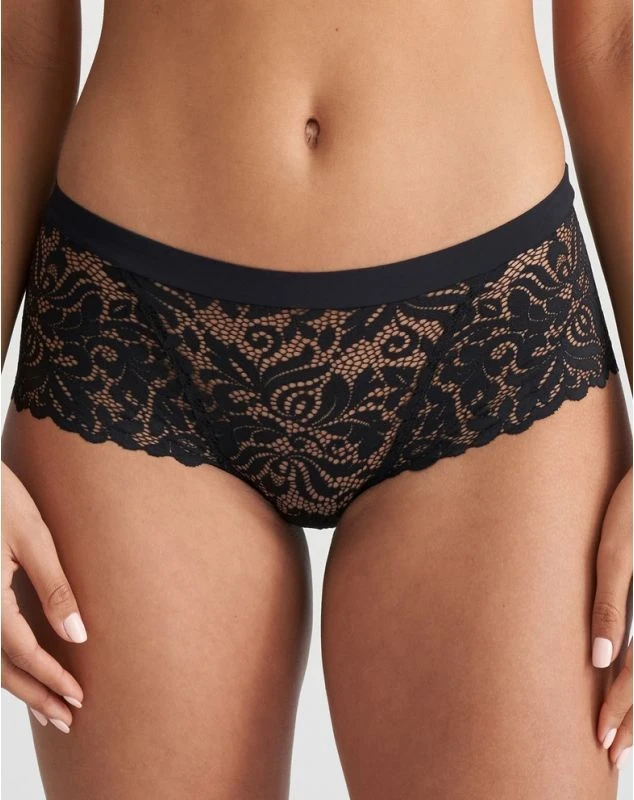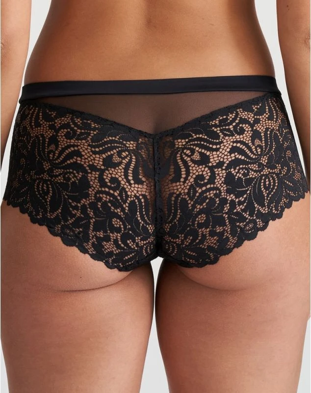Le shorty Marie Jo Elis propose une séduisante dentelle qui affiche un galon brillant à la taille. Sur les fesses, la somptueuse dentelle s’associe à un tulle vaporeux.