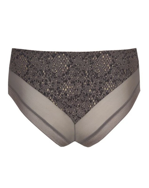 Shorty complètement lisse en tissu satiné avec un imprimé serpent. Un tulle sexy sur les fesses complète votre look. La culotte dévoile une partie sensuelle de vos fesses et ne coupe pas.