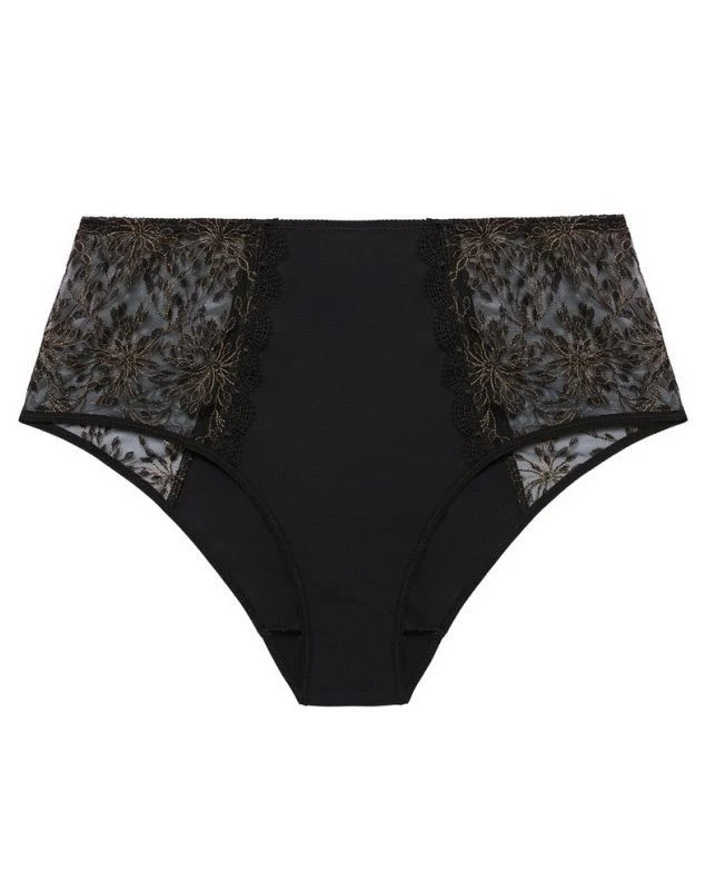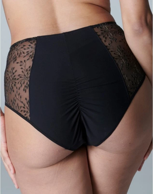 La culotte Singulière de la marque Simone Pérèle offre une silhouette affiné par sa forme montante. La broderie au motif floral vient elle habiller les cotés de la culotte.
