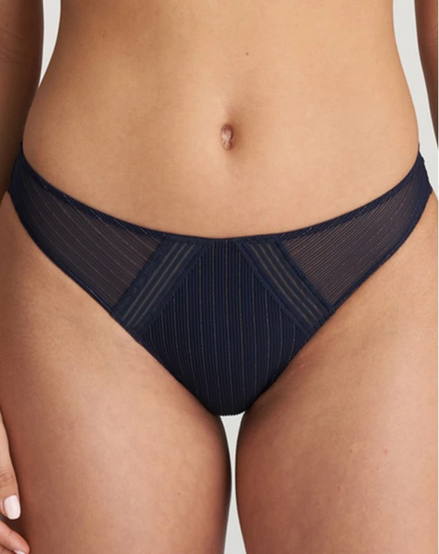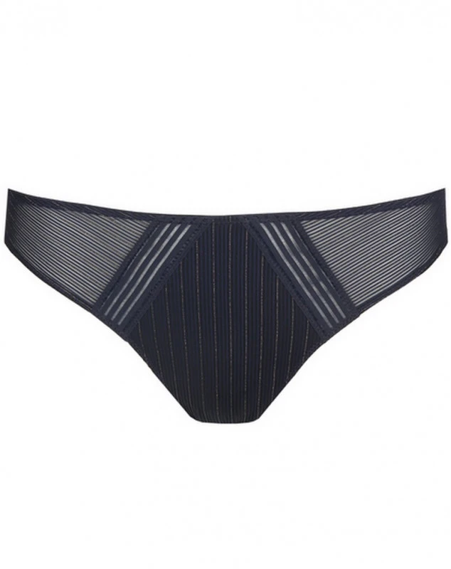 Slip brésilien élégant affichant un jeu de lignes frivoles et des empiècements transparents séduisants sur les hanches.