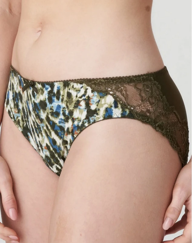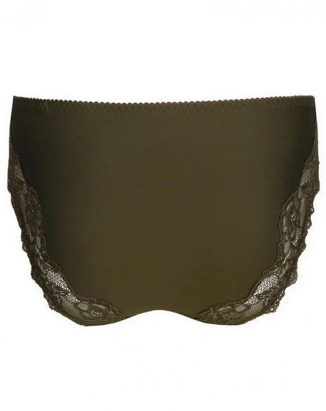 Le slip brésilien Prima Donna dont le tissu à carreaux est orné d’une luxueuse dentelle extensible qui se prolonge sur les fesses.