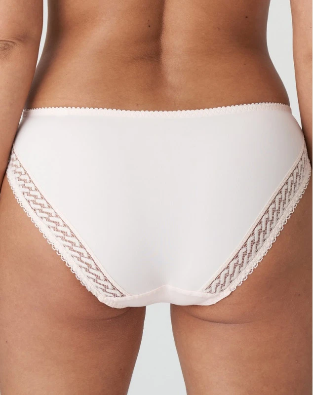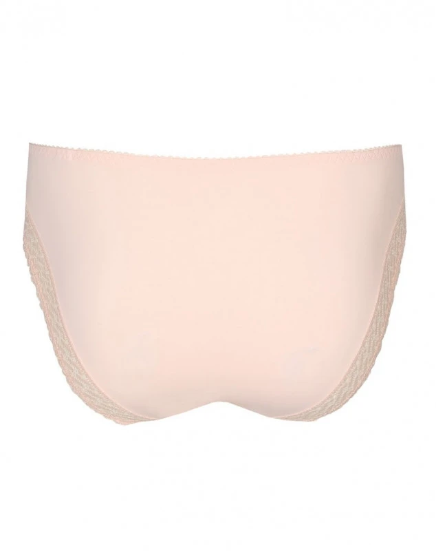 Slip brésilien élégant en tissu lisse, affichant des bandes de dentelle qui s’étendent de l’avant à l’arrière. Le rose poudré Crystal Pink est à la mode, féminin et facile à assortir.