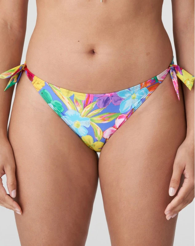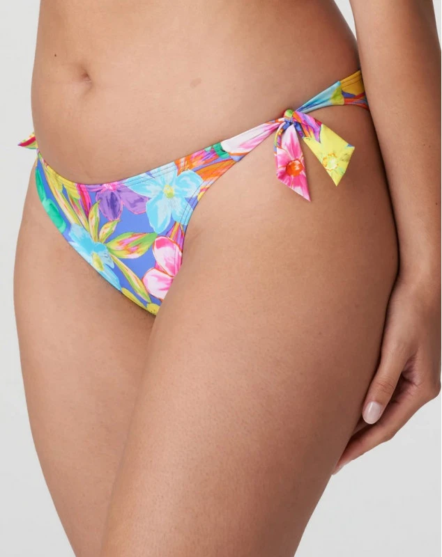 Culotte taille basse affichant un imprimé floral oversize très tendance. Vous pouvez nouer les rubans vous-même. Blue Bloom mélange un bleu vif avec du rose et de l’orange, rehaussés de touches fluos.