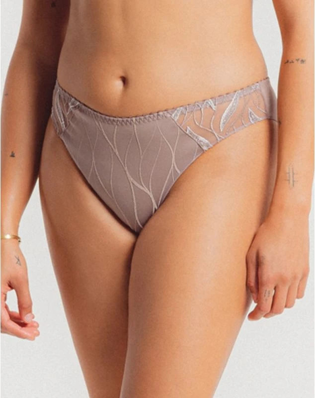 Le slip de la collection Julia par Louisa Bracq propose une forme lĂ©gère aux designs graphiques sur l’avant.