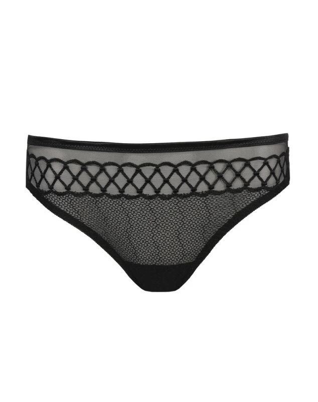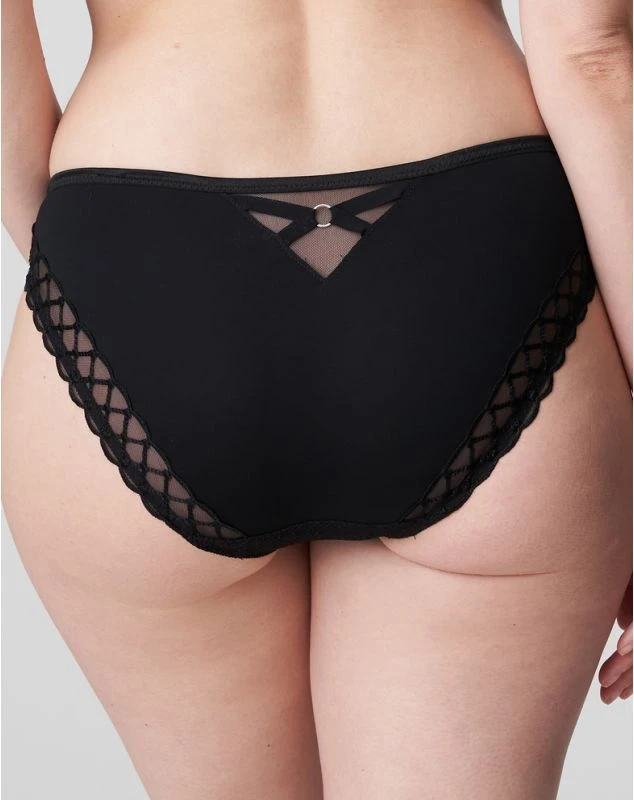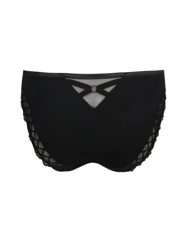 Le slip Prima Donna de la collection Vya offre sensualité et confort grâce à sa semi-transparente, et ses broderies sur les fesses. Une petite boucle décorative au dos complète ce look élégant.