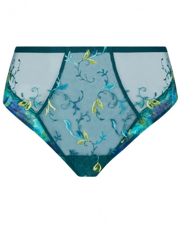Le slip taille haute Lise Charmel de la collection Grâce Aquatique offre une sensation de confort unique de par l’absence d’élastique à la taille. Il apporte également une touche féminine avec son ajourage et ses motifs floraux.