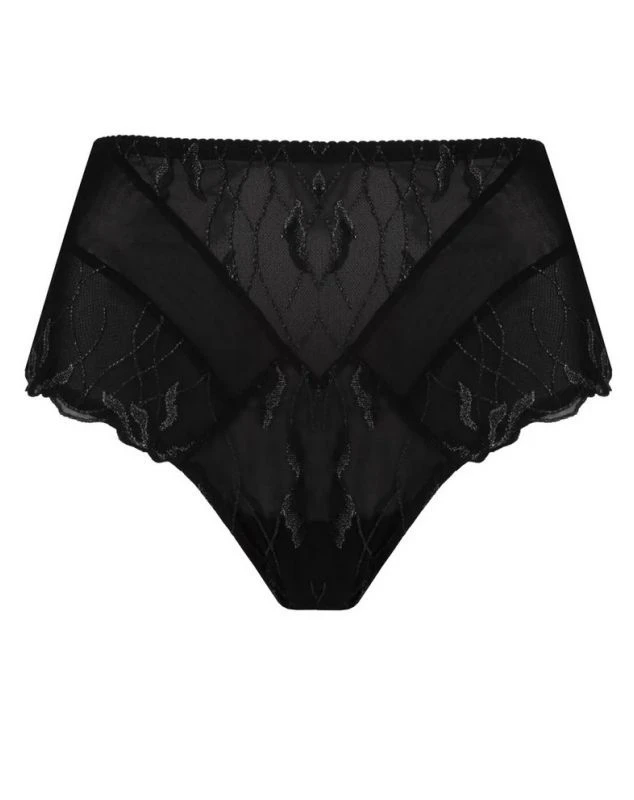 Le slip haut de la collection Les Nuits Chics de la marque Lise Charmel propose un jeu de transparence mêlé à des broderies délicates et des reflets subtiles pour une allure chic et sensuelle et une silhouette jolie sculptée.