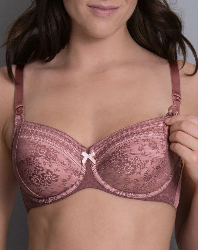 Le soutien-gorge d’allaitement Anita Fleur a une dentelle douce ultraplate au motif floral, avec armatures souples et modelantes.