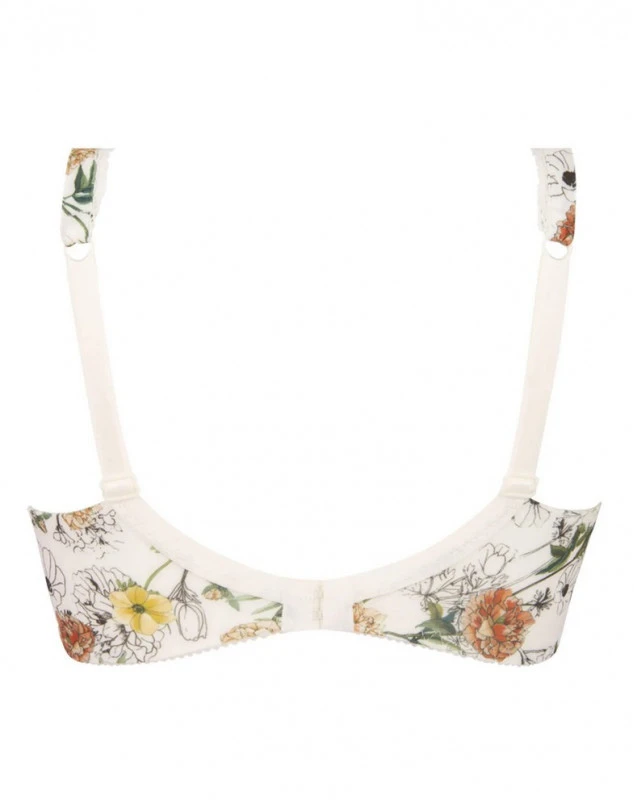 Le soutien-gorge armatures bien-être Antigel de la collection Liberté en Fleurs offre une bordure élastique en polyamide élasthanne fantaisie à ponts. Le modèle est féminisé par un fin galon de dentelle Jacquard au dessin végétal. Les bretelles sont enrichies d’une bande en dentelle, habillant le décolleté. Pour plus de confort, le dos des bretelles est élastique. Pour embellir l’entre-gorge, un nœud orange souligné d’un liseré satin décore le soutien-gorge.