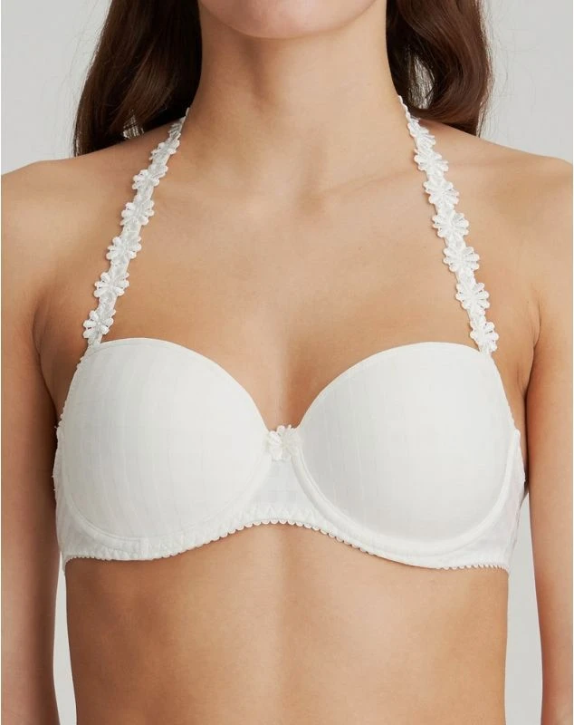 Ce balconnet Marie Jo propose un bonnet rembourré préformé. L’entre-bonnet est rehaussé. La bretelle se porte droite ou en tour de cou.