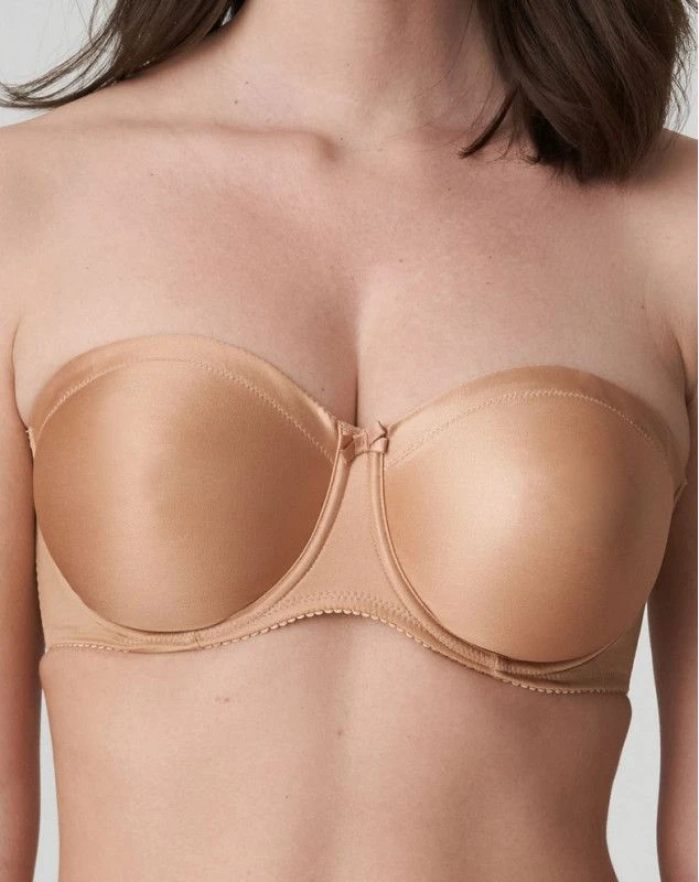 Ce soutien-gorge bandeau moulé PrimaDonna Satin propose des bretelles amovibles et un maitien parfait jusqu’au bonnet G.