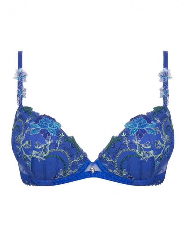 Le soutien-gorge coque De Cristal et d’Eau de la marque Lise Charmel propose un modèle féminin par cette dentelle fine et légère ornée d’une broderie sur un tulle, afin de laisser transparaître le plus de lisibilité à ce dessin au motif floral et aquatique. Il possède des coques progressives pour les bonnets A et B et light pour les bonnets C, D et E.