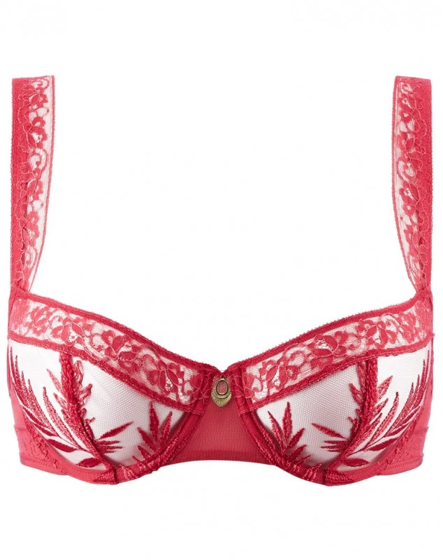 Optez pour ce soutien-gorge corbeille Aubade à armatures a des bonnets profonds. Un jeu d’opacité et de transparence le rendent très sensuel. Ses bretelles sont décorées et un bijou en forme de feuille dorée le rend très élégant.