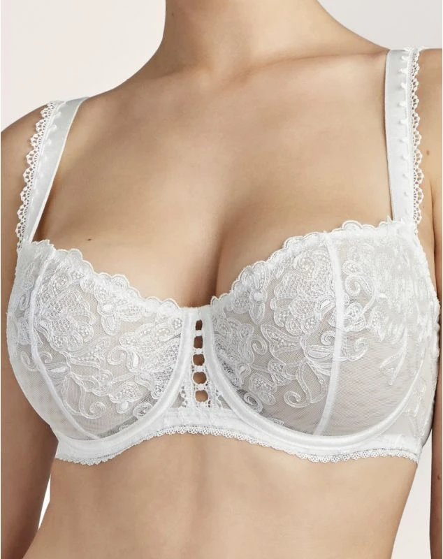 Le soutien-gorge corbeille Aubade Pour Toujours propose une fine bande de guipure ajourée qui dévoile une sensualité et laisse apparaître la peau au niveau de l’entre-seins. La broderie délicate est idéale pour un look séduisant et raffiné.