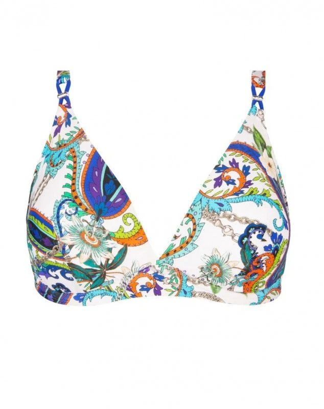 Le soutien-gorge de bain triangle à armatures de la collection Odyssée Cashmer vous offre un maintien idéal ainsi qu’une forme parfaite, le tout complété par des crochets au dos montés plus hauts pour le bonnet E.