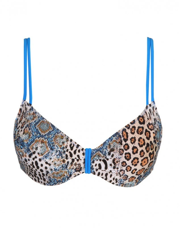 Haut de bikini emboîtant au style frivole, à imprimé animalier et bretelles spaghetti. Commencez déjà à rêver d’eaux turquoise et de plages de sable fin.