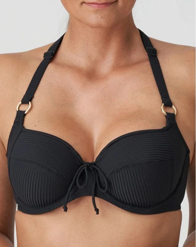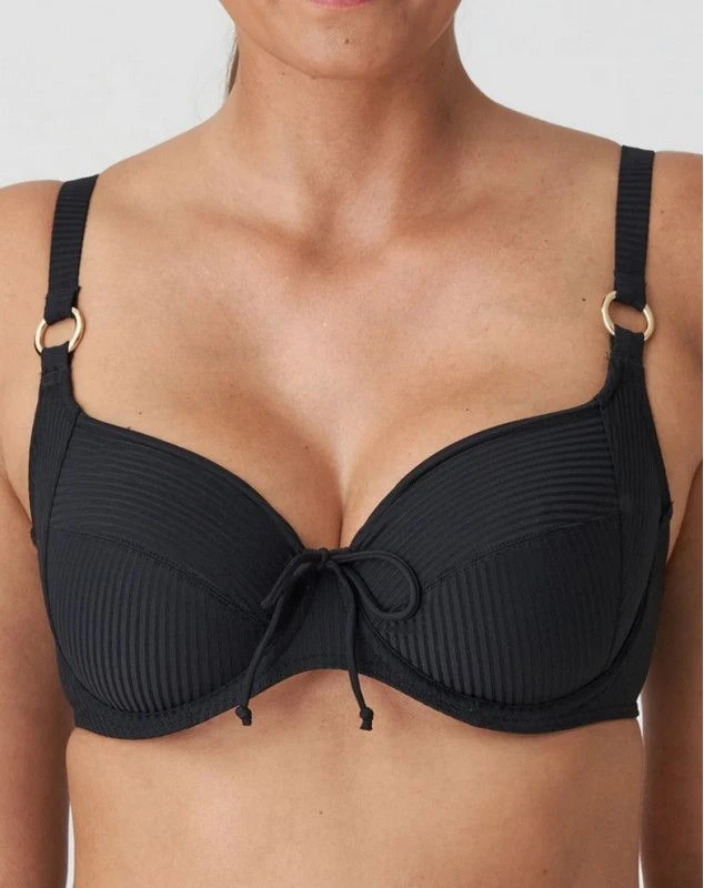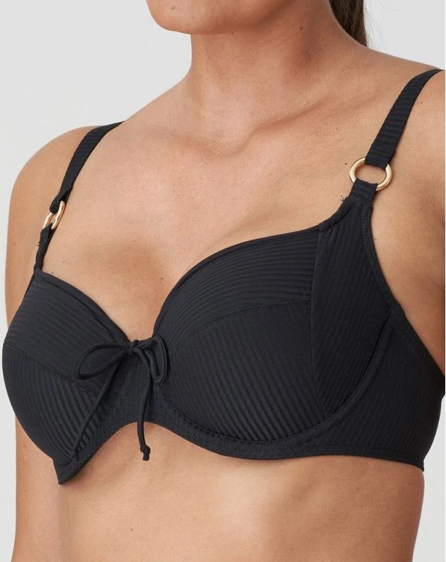 Élégant haut de bikini emboîtant en tissu texturé fin. Des maillots de bain élégants en noir intemporel : que demander de plus ?