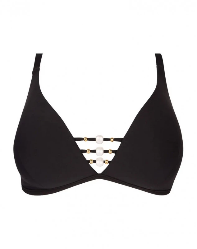 Le soutien-gorge de bain sans armature de la collection Perles Nacrées vous offre un grand confort de par sa structure sans armature. Un jeu de perles et de spaghettis à l’entre gorge viennent sublimer la pièce.