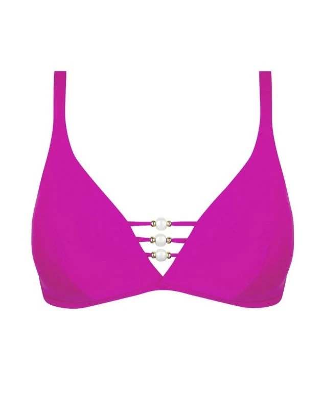 Le soutien-gorge de bain sans armature de la collection Perles Nacrées vous offre un grand confort de par sa structure sans armature. Un jeu de perles et de spaghettis à l’entre gorge viennent sublimer la pièce.