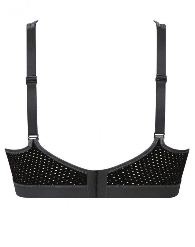 Le soutien-gorge de sport Anita Performance propose une matière microperforée pour une aération optimale. L’évacuation de la transpiration dans ce modèle est assurée par le mélange de plusieurs matières.