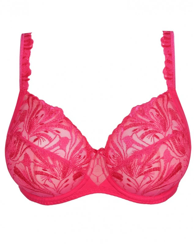 Soutien-gorge emboîtant branché, avec un look de corset romantique et une coupe très confortable. Les bonnets sont réalisés en tulle avec des broderies florales et un délicat motif graphique, tandis que les renforts latéraux opaques soulignent élégamment votre décolleté. Electric Pink est une teinte fuchsia puissante et estivale très branchée.