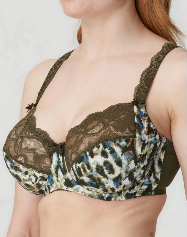 Soutien-gorge emboîtant en trois parties réalisé dans un tissu à carreaux et affichant une dentelle sensuelle sur le décolleté et les bretelles.