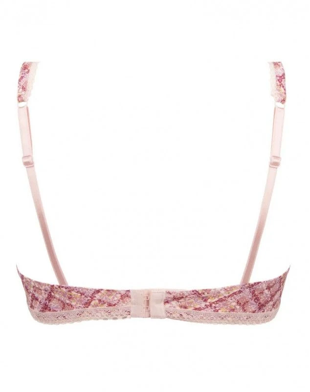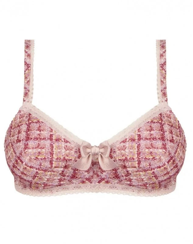 Le soutien-gorge sans armature Antigel de la collection Un amour de Tweed propose des bretelles Ă©lastiques avant fixes et enrichies d’un imprimĂ© et d’une dentelle, habillant ainsi le dĂ©colletĂ© et la maille ultra douce, imprimĂ©e d’un motif exclusif chaine et trame, effet tweed.