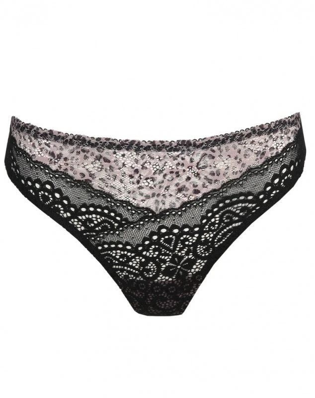 Ce string met en valeur vos fesses, a un effet lisse sous les vêtements et crée l’illusion de jambes plus longues. String sexy en dentelle graphique et à imprimé animalier original. Smokey est une couleur noire qui met en valeur l’imprimé léopard.