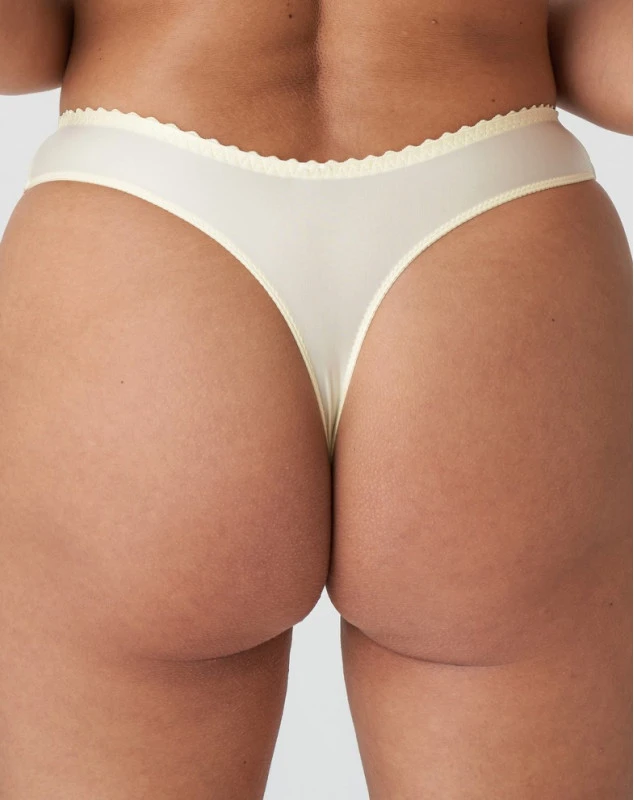 String en tulle à pois et broderie florale colorée. Les ouvertures de jambe extra hautes et la taille haute créent un look sexy et à la mode.
