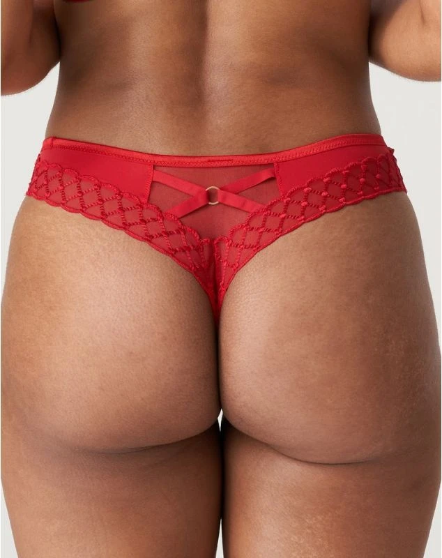 String sexy en maille avec broderie sur les fesses. Détail piquant : la boucle décorative au dos. Les ouvertures hautes des jambes et la broderie créent un look super séduisant.